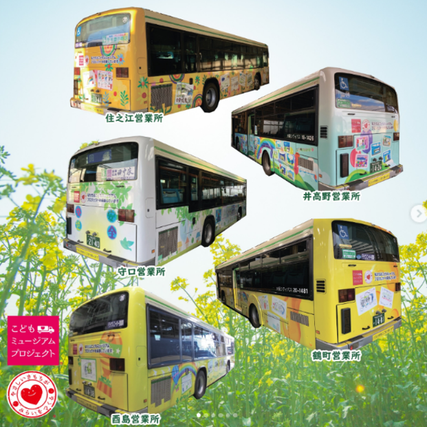 トラックから始まった活動が、いま、介護施設、デイサービス、送迎車に広がりました。ご利用者さんのお孫さんが書いた絵が、大阪のシティバス、チェッカーグループのタクシー、いろんなところにラッピングされています。